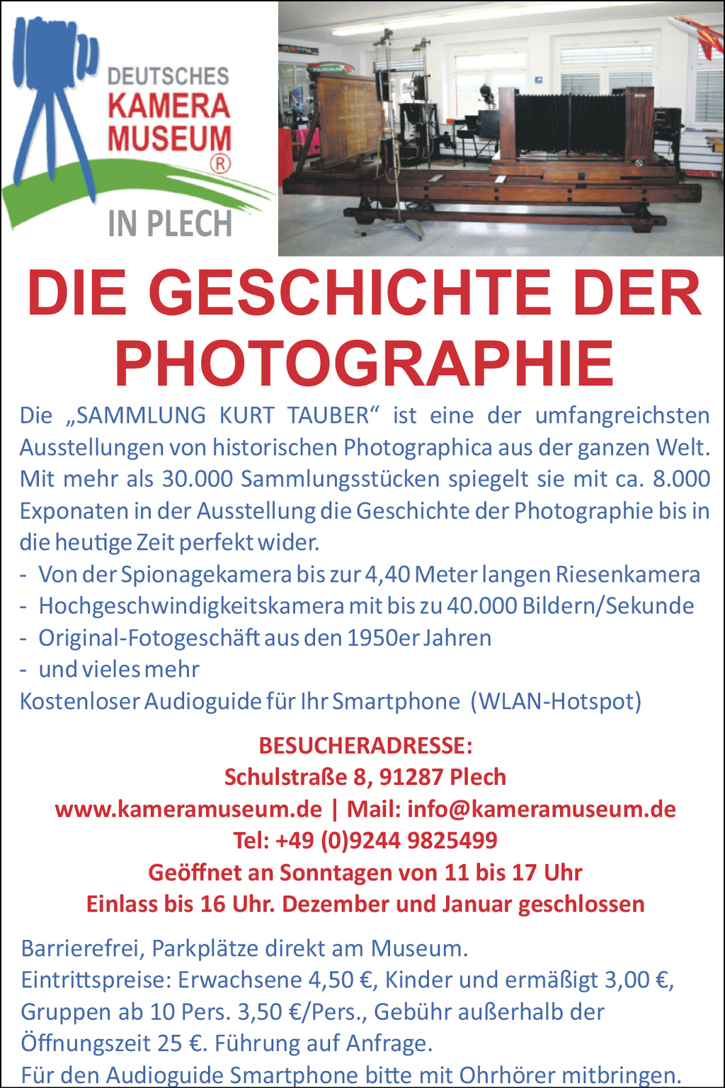 Deutsches KameramuseumDeutsches Kameramuseum „Sonderverkauf überzähliger Museumsexponate“19.09.2021BayernPlechSonstiges